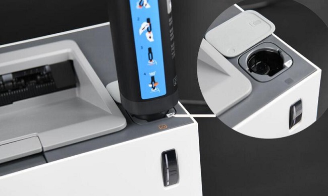 在操作時只需將智能閃充粉盒小黑管插入充粉口,下壓填充即可,單支充粉僅需15秒,省事、省力而且還不臟手。