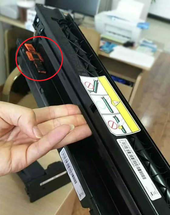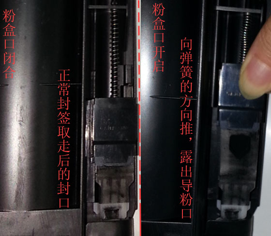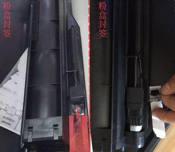 2、粉盒封簽漏取或封簽取的不完整,導(dǎo)致粉盒中的粉,無(wú)法被馬達(dá)導(dǎo)出;