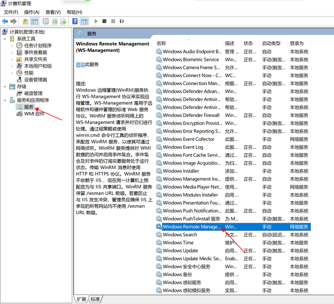 解決方法:在桌面“此電腦”點(diǎn)右鍵選擇“管理”,然后依次點(diǎn)擊“服務(wù)和應(yīng)用程序”-->雙擊“服務(wù)”-->找到“Windows Remote Management”并雙擊,然后