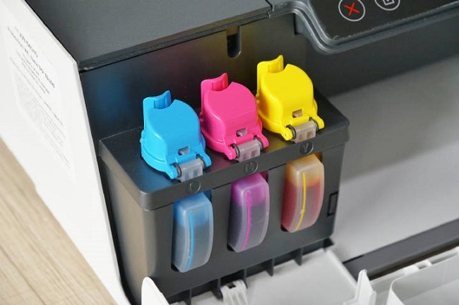打開斜切面的蓋板后,我們可以快速給一體機(jī)添加所需墨水。